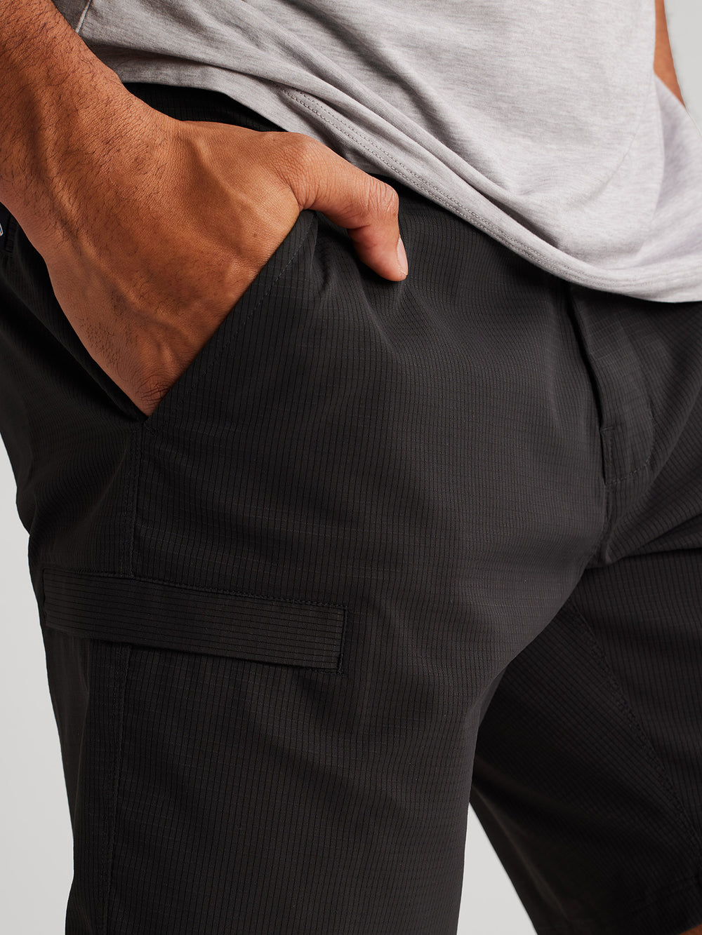 Technical ripstop field short for trekking, travel, and everyday wear, made from advanced Japanese fabric. Durable, breathable, and infused with 360-degree mechanical stretch. Two hand pockets, two zip rear pockets, and a zip cargo pocket to securely carry essentials.