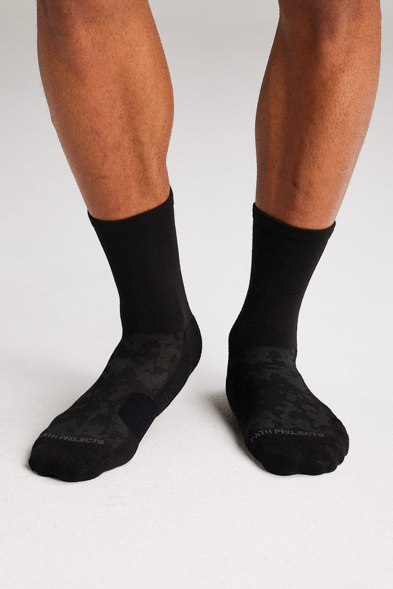 Socks are a small, but vital element to a runner’s kit. We set out to engineer a sock that, like our shorts, would thrive on long arduous trails. The Joyner Collection is our answer with the right amount of cushioning, arch support, and an engineered right/left design. For our yarn, we use a special Coolmax™ polyester yarn with a superior moisture-wicking property which comes in handy on hard efforts.