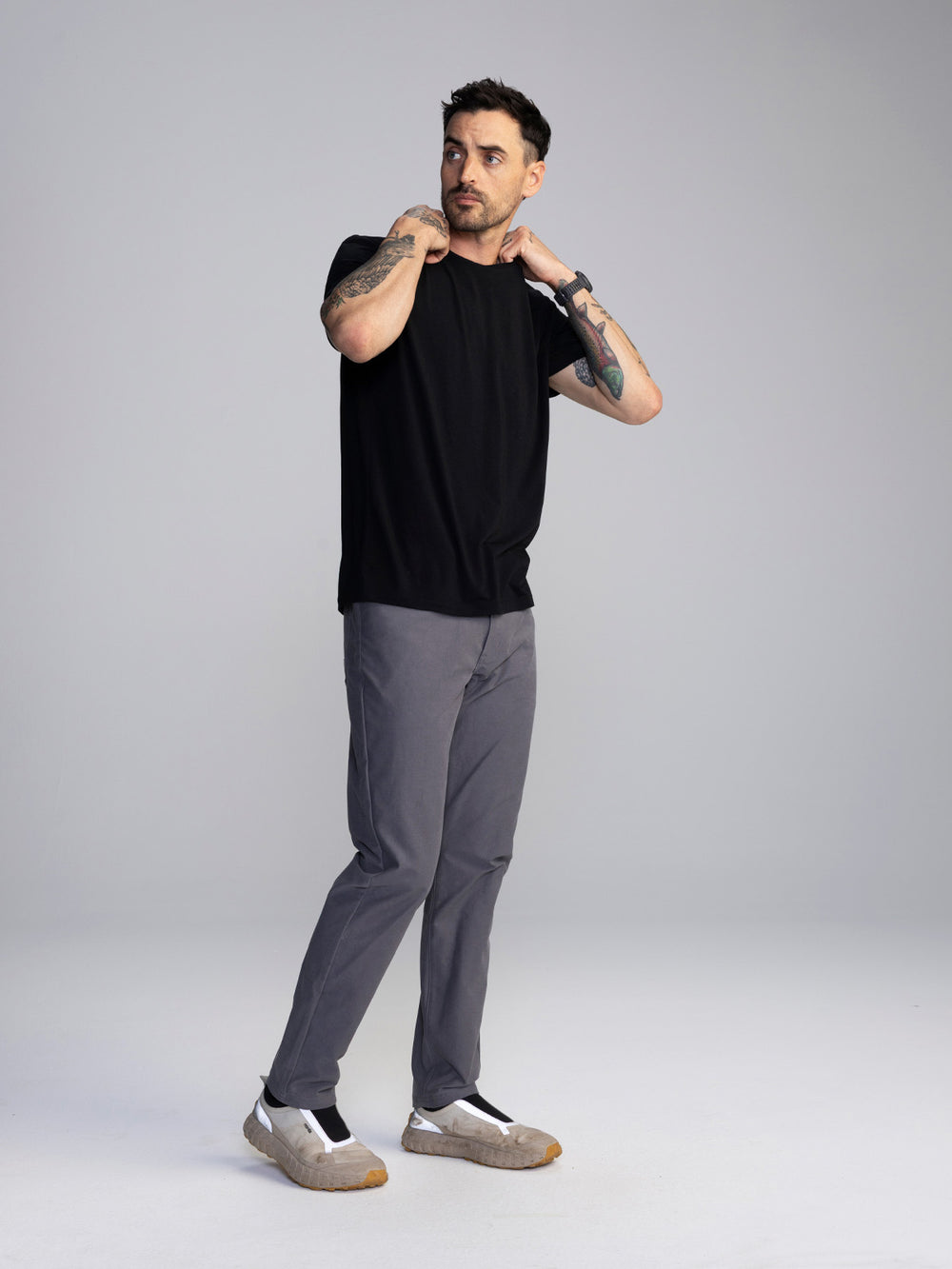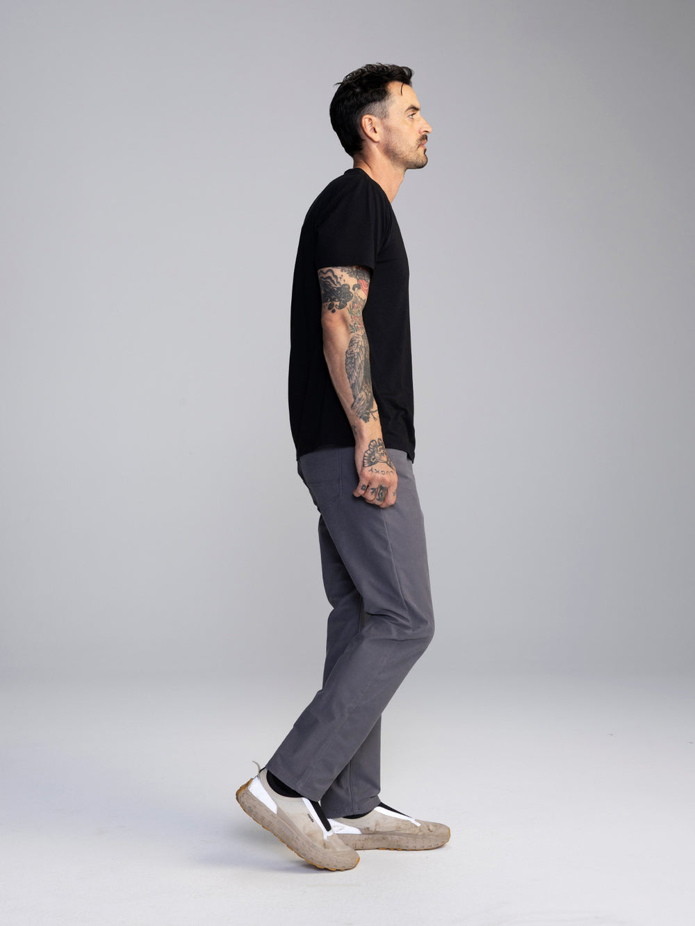 Rugged canvas 5-pocket pants infused with undercover tech that wears like denim. Durable cotton canvas exterior lined with performance material for comfort and stretch. Available in two fits.