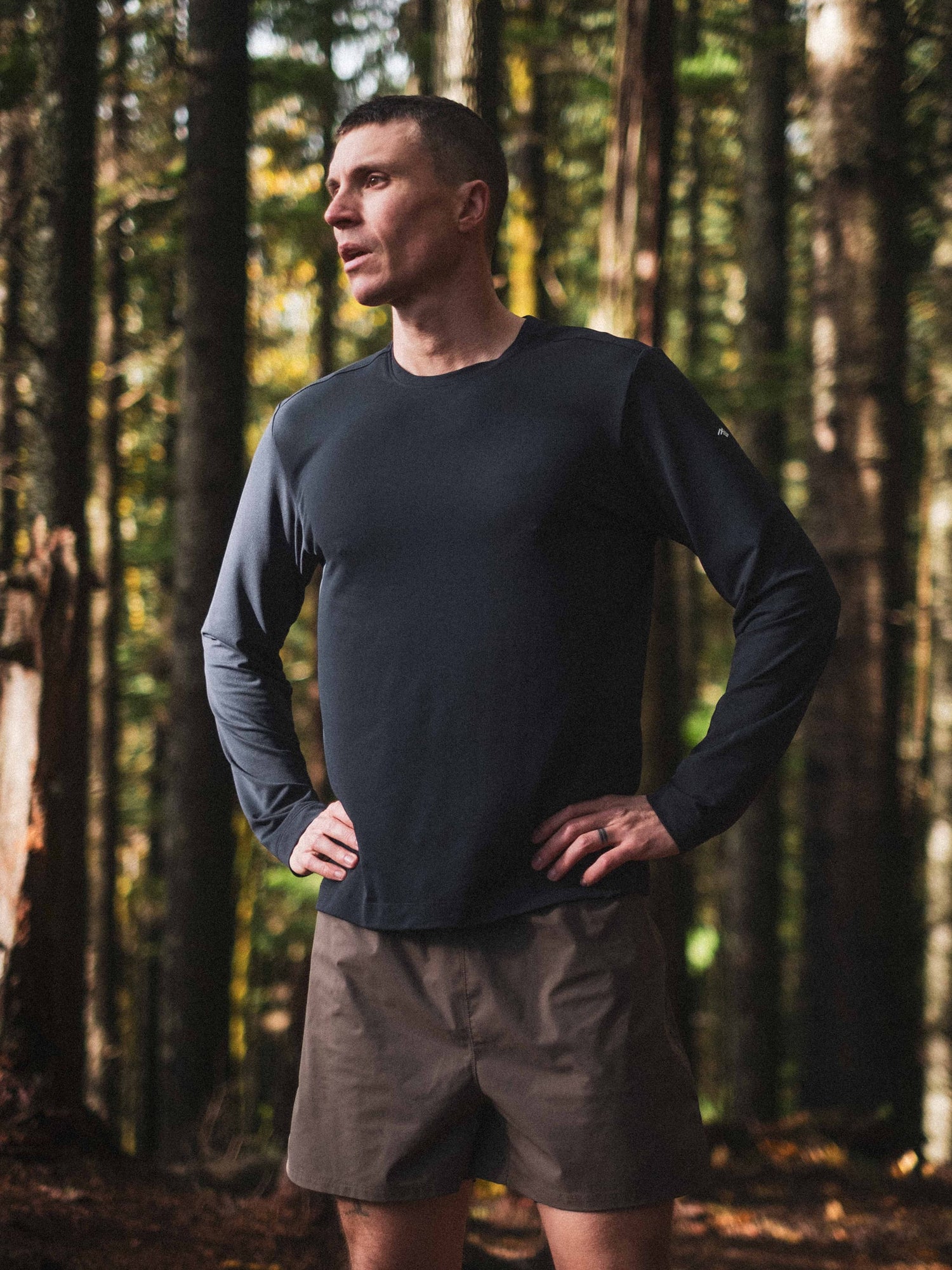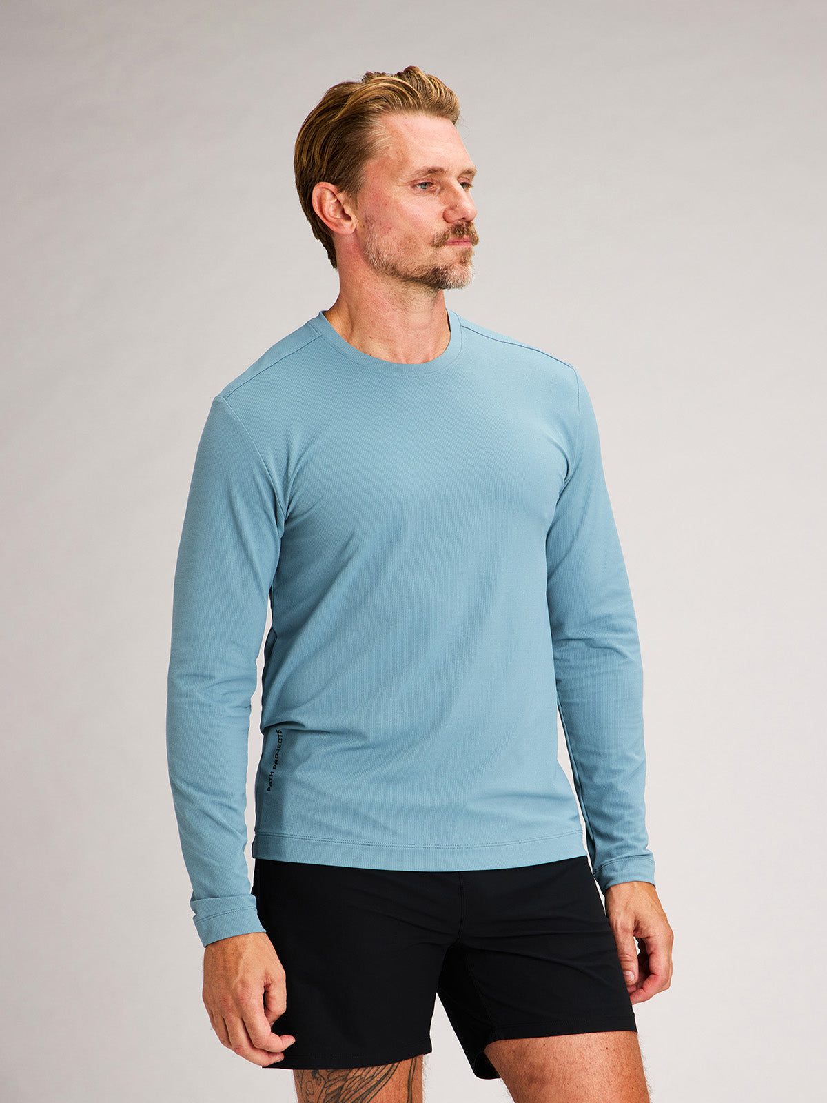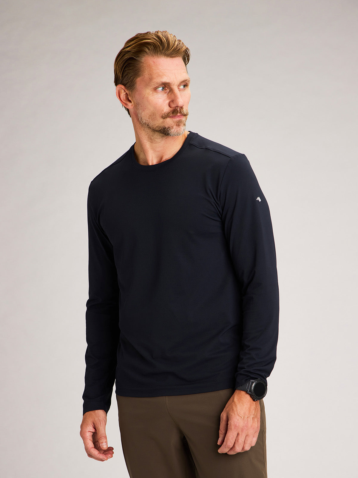 Midweight performance tee engineered for cool conditions. Powered by warm-yet-breathable microthermal grid fabric from Japan with built-in stretch and UPF protection.