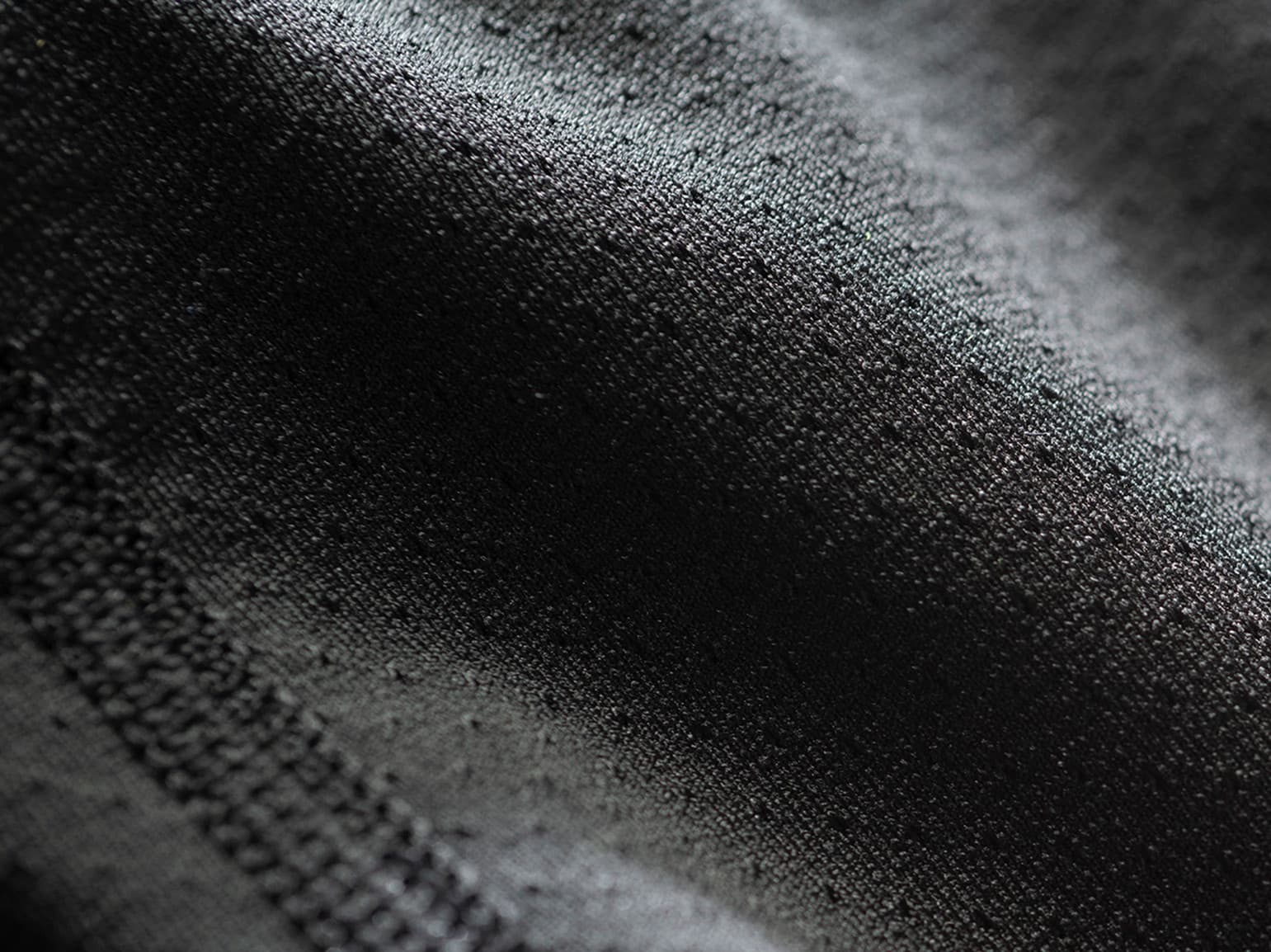 Coolite Mesh is for the extremist. This birdseye mesh fabric is ultra-light, super-wicking and insanely breathable. It’s a jacquard style knit with an extra measure of softness and loft to the fabric. You’ll feel that comfort against your skin along with a gentle compression effect from the spandex and polyester mix. The birdseye hole pattern keeps the cool air flowing even on the most scorching runs.