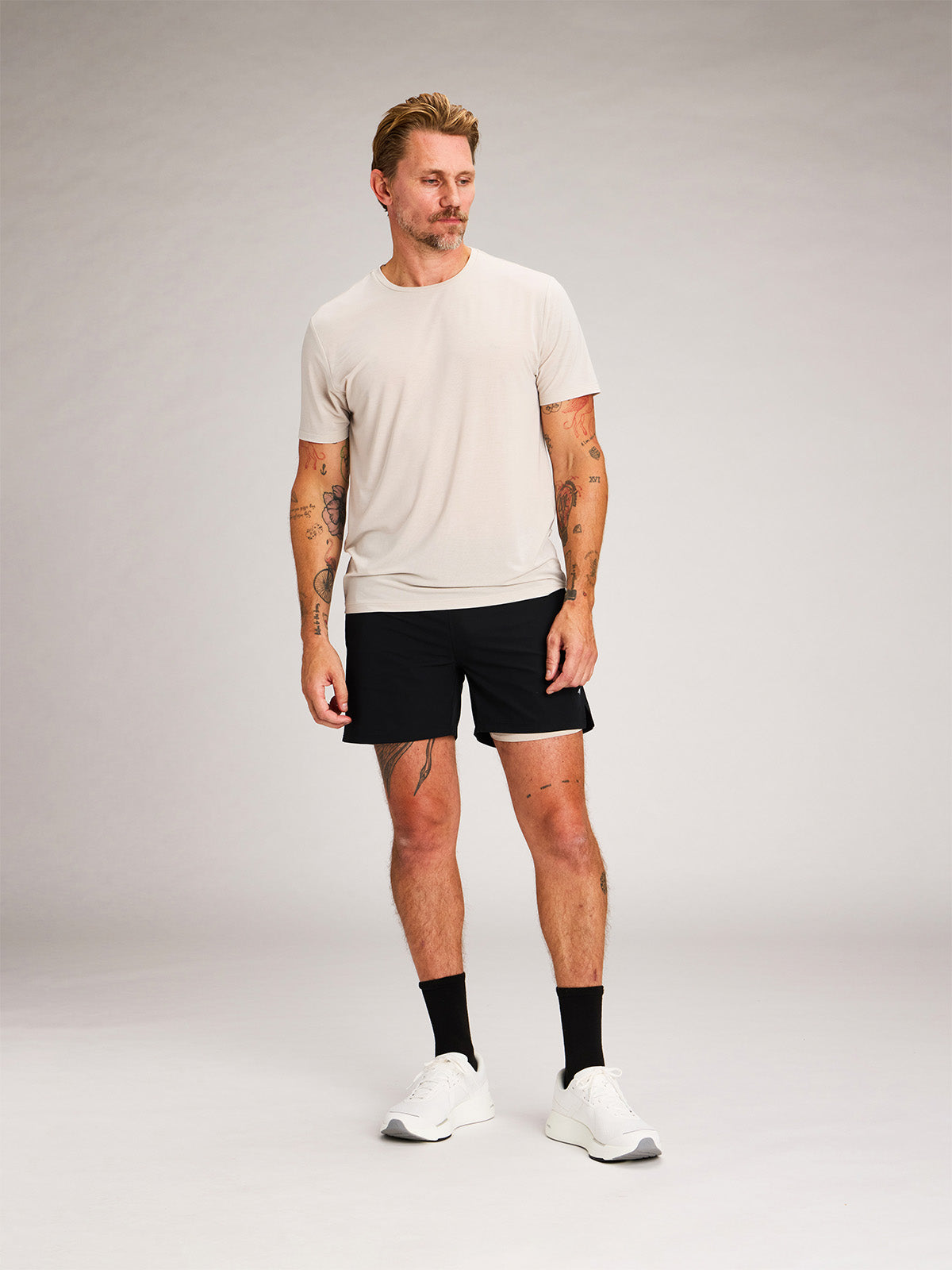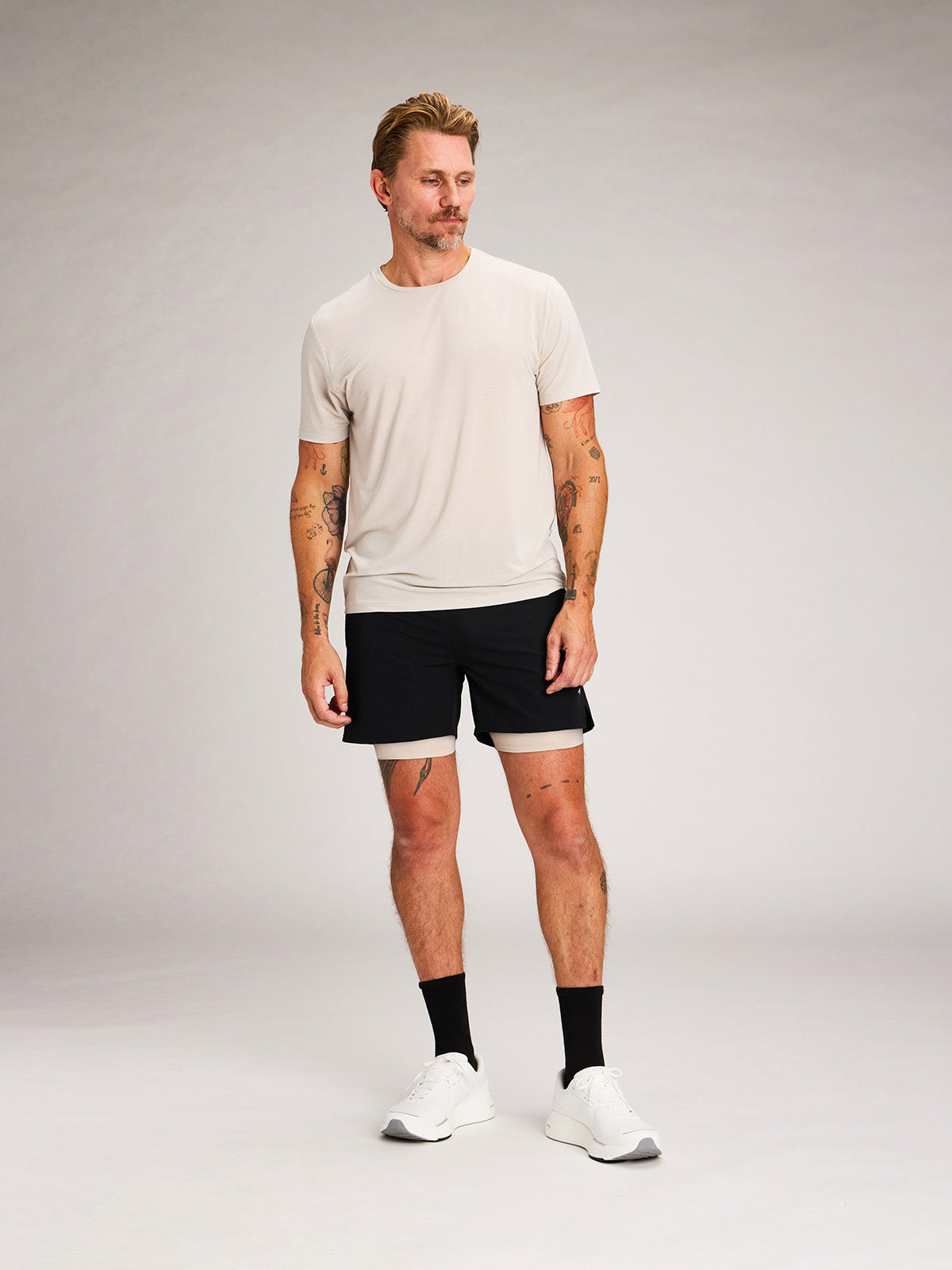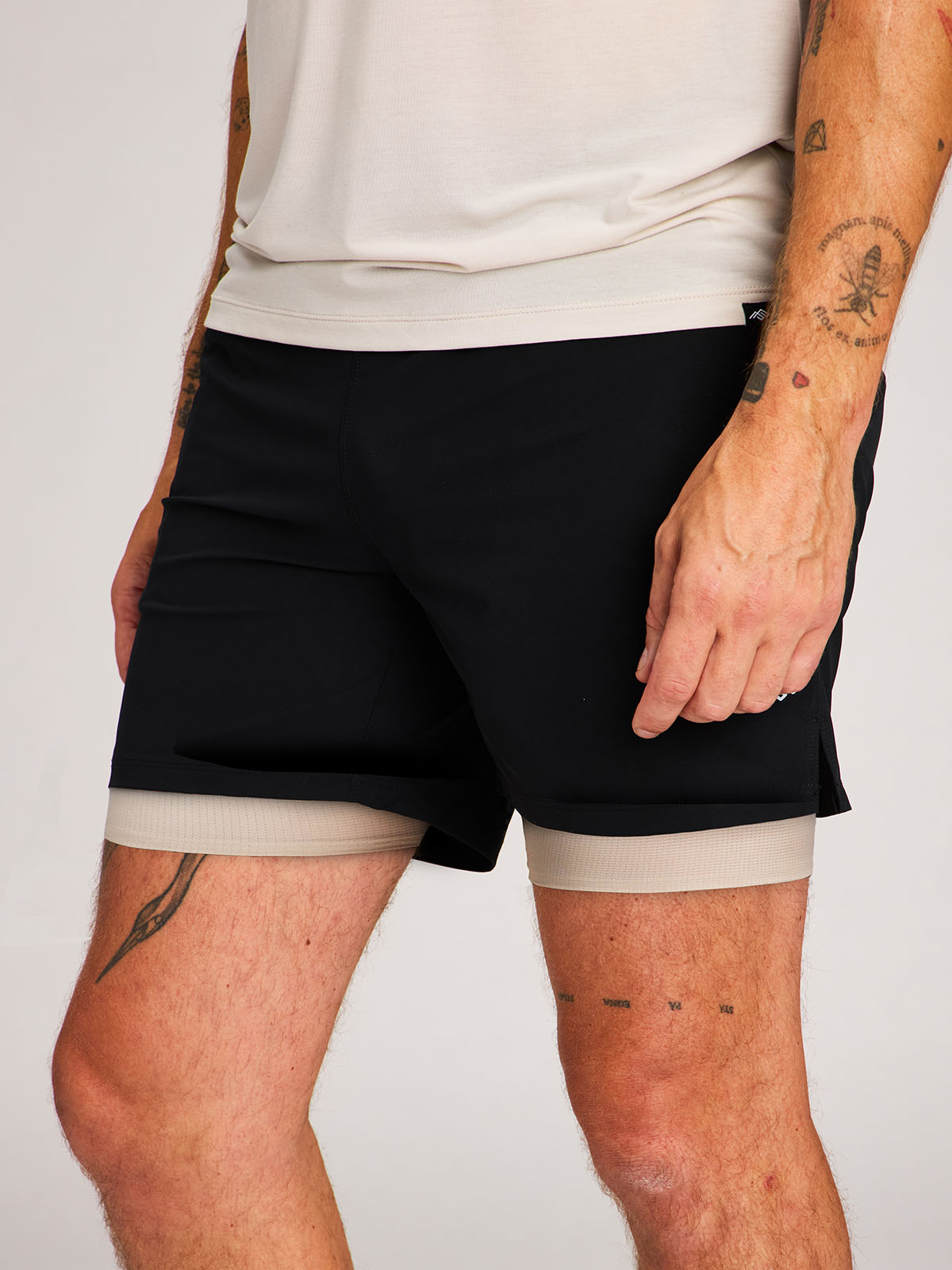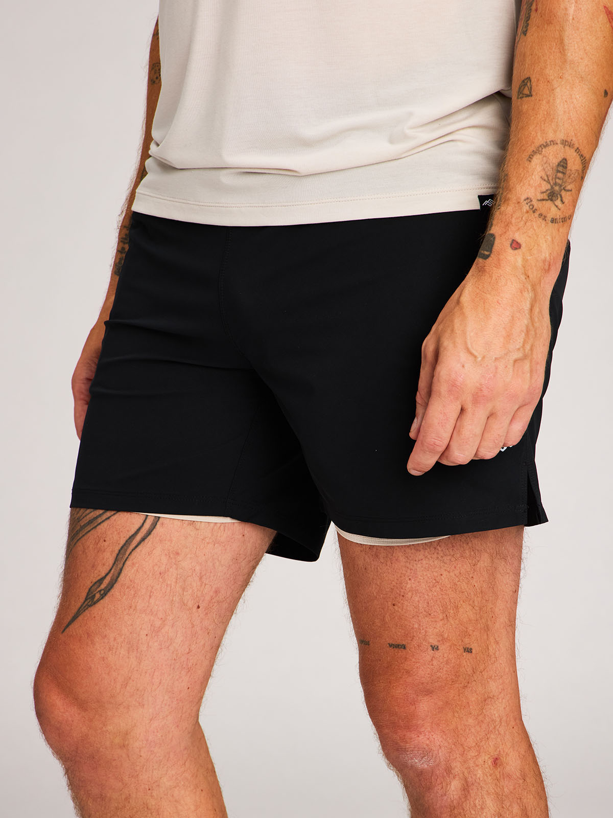 • The base liner stays in place and wicks away moisture, allowing the short to move naturally with the body.