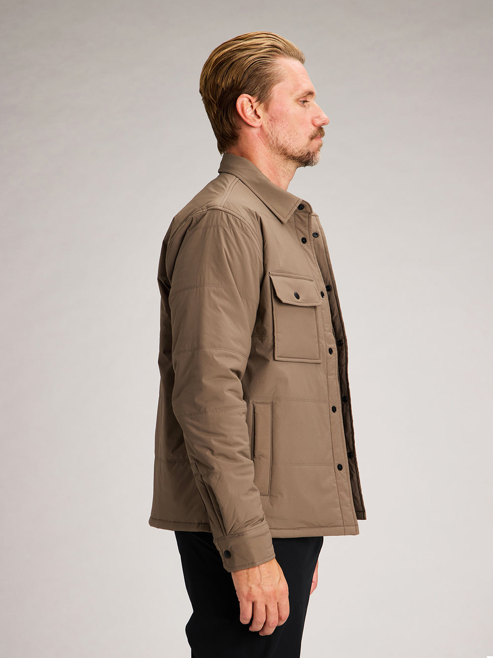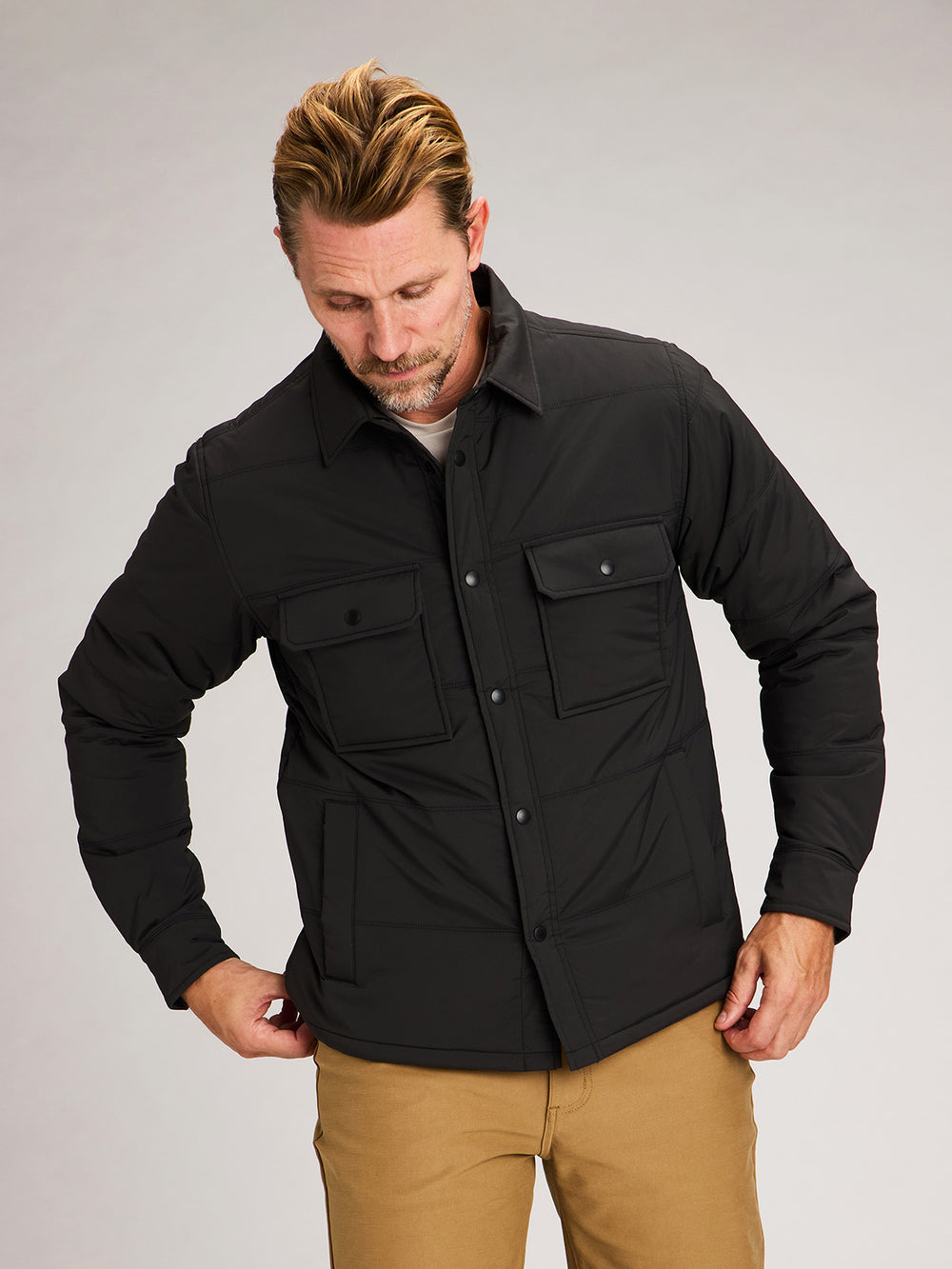 Lightweight insulated shirt jacket ideal for pre/post run warmth and daily layering. Water-resistant nylon shell filled with PrimaLoft® Eco Silver recycled insulation, finished with five pockets to carry essentials. FINAL SALE ITEM. NO RETURNS OR EXCHANGES.