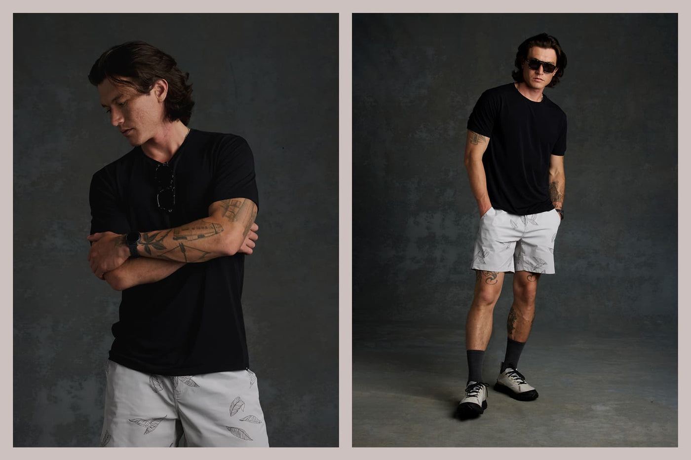 Versatile active shorts developed for warm-weather adventures across land and water.